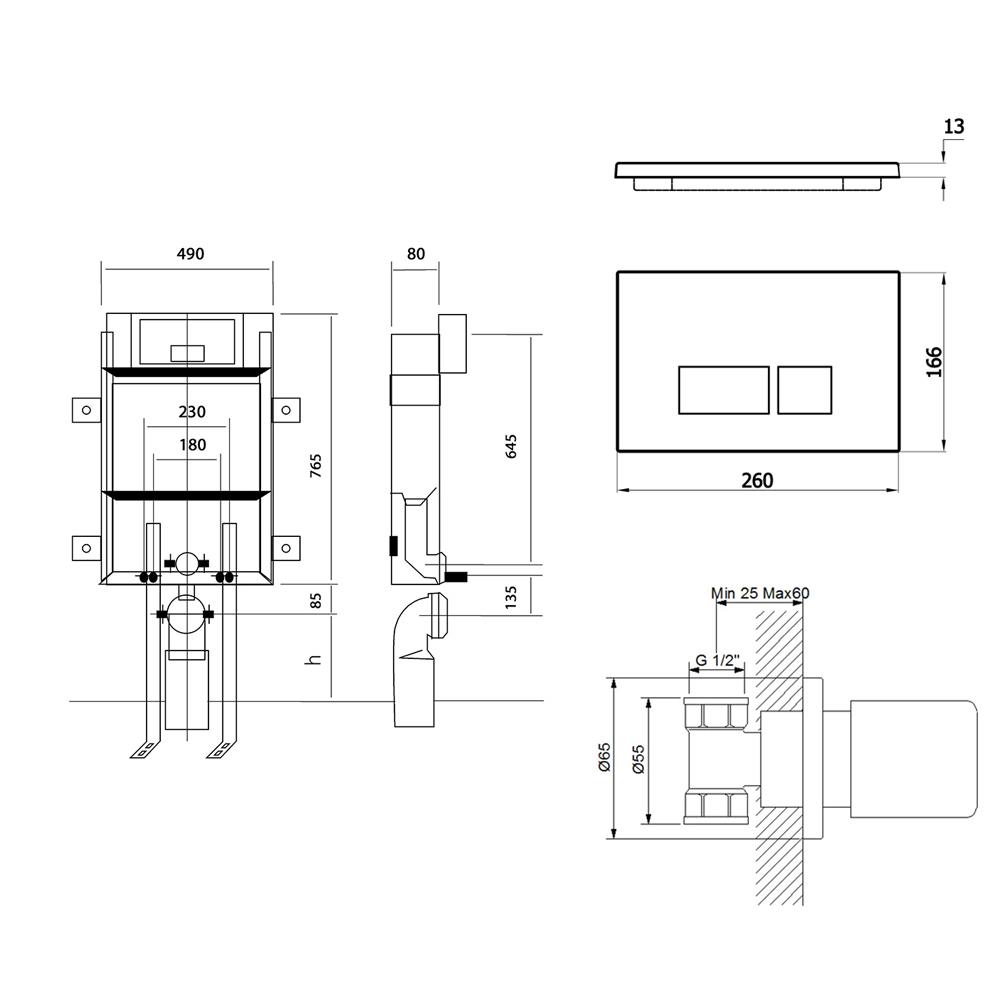 Uyumluluk: Standart gömme sistem ve duvar kalınlıklarıyla uyumludur