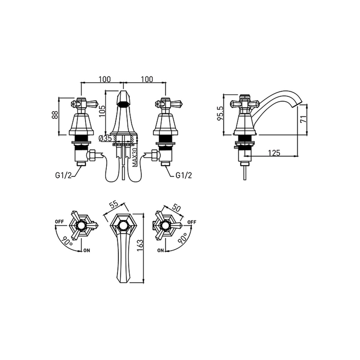 Newarc Hexa Üç Delikli Lavabo Bataryası 104561