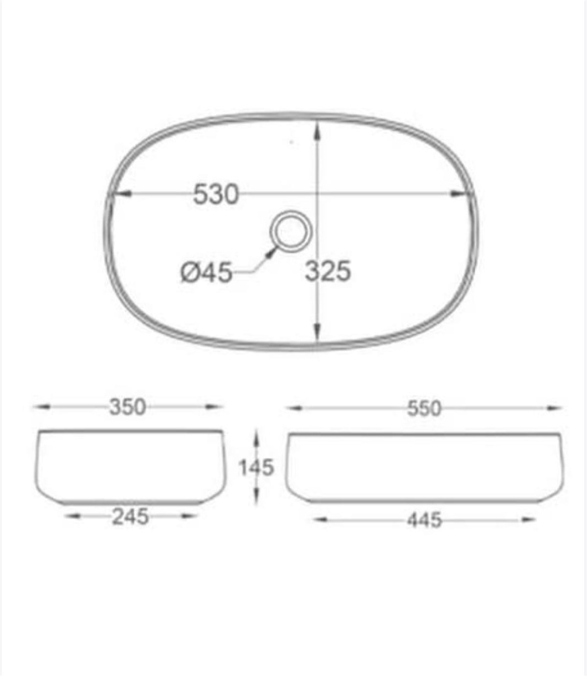 Newarc Lavelli Tezgah Üstü Lavabo Mat Siyah 55X35X14,5Cm Lav.L.055 Mb