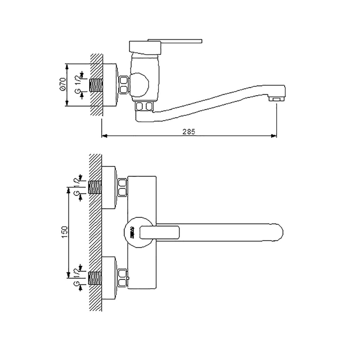 2. Teflon bantla sardığınız kısmı tesisata vidalayarak monte ediniz. 3. Monte sırasında iki dirsek arası mesafeyi 150mm. Olacak ve Armatürün yere dik su akıtacak şekilde ayarlayınız