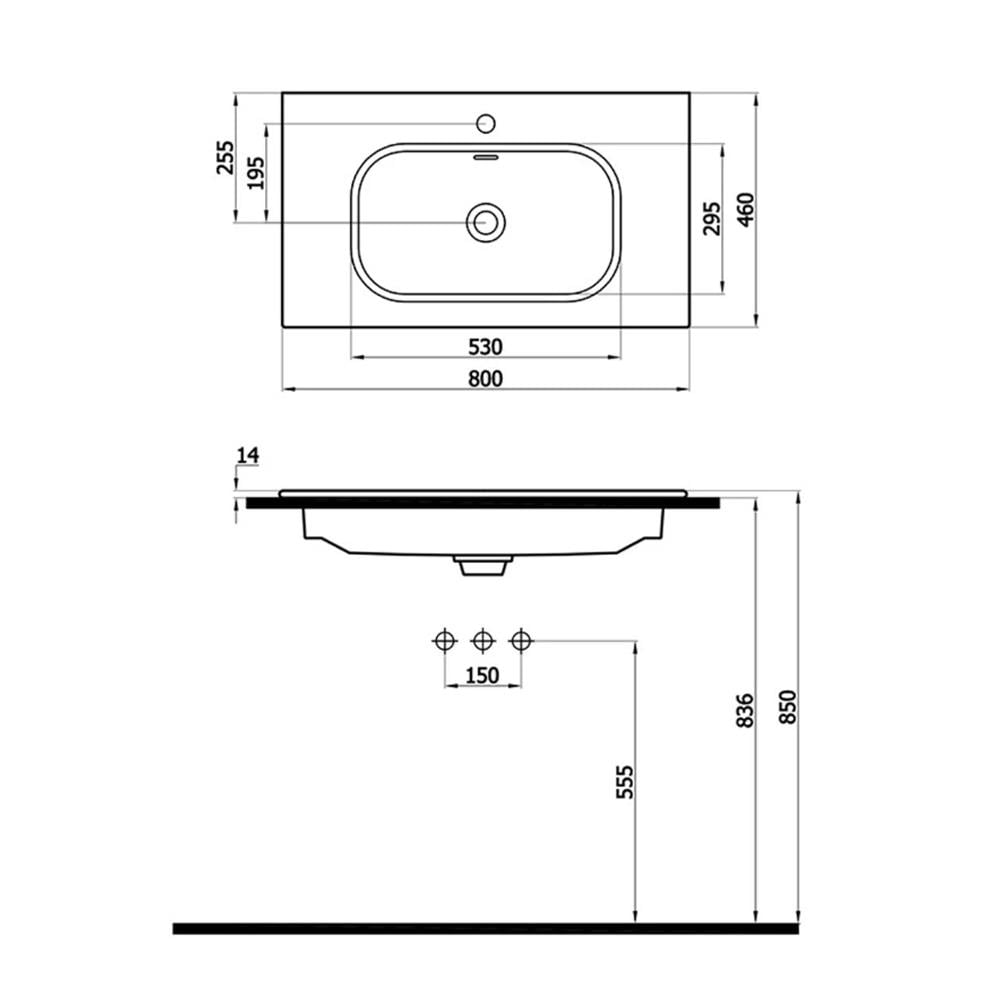 Newarc Naturel Etajerli Lavabo Mat Antrasit 80X46X1,4Cm 504080Ma