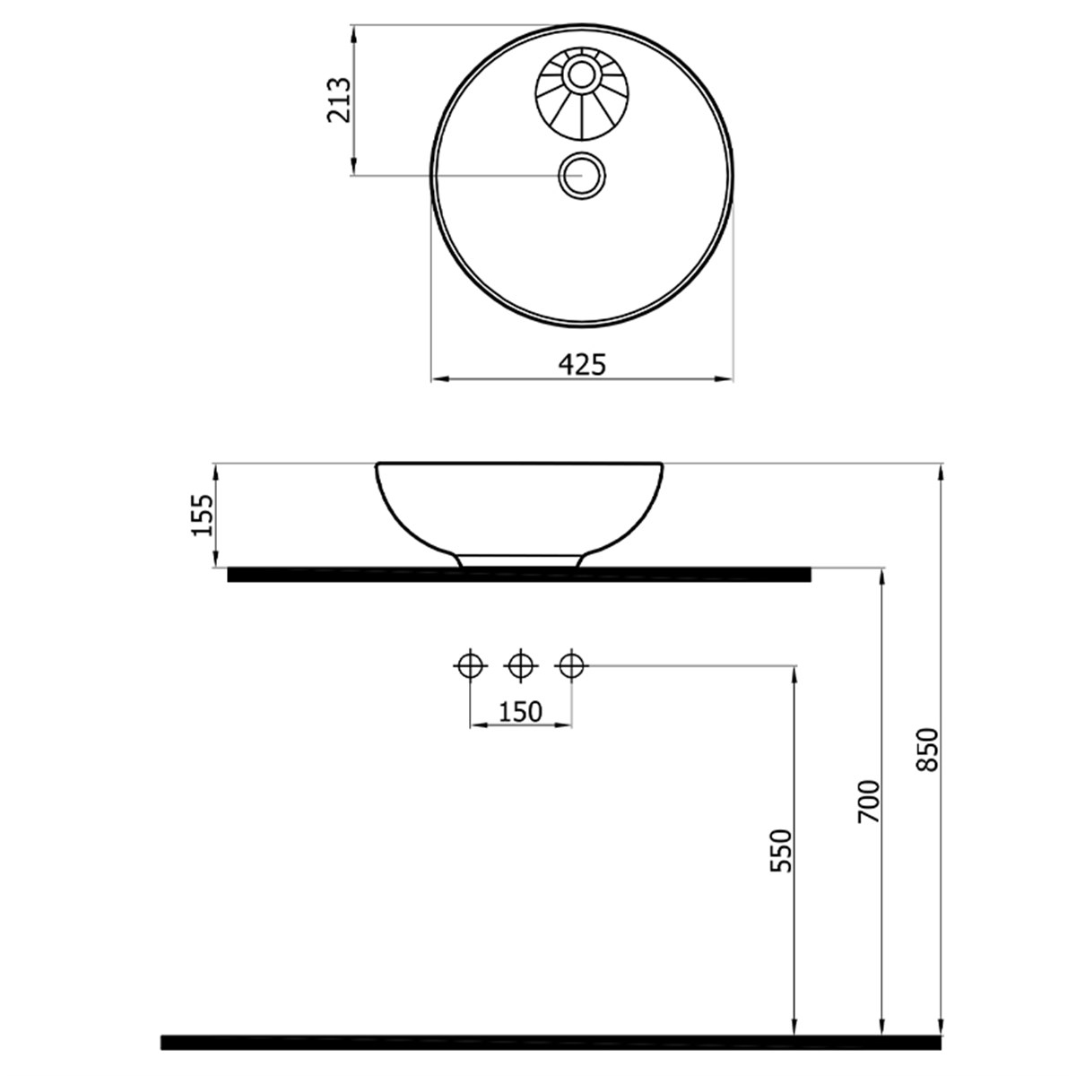 Newarc Newart Tezgah Üstü Batarya Delikli Lavabo Parlak Siyah 42,5X15,5Cm 5010Bt-B