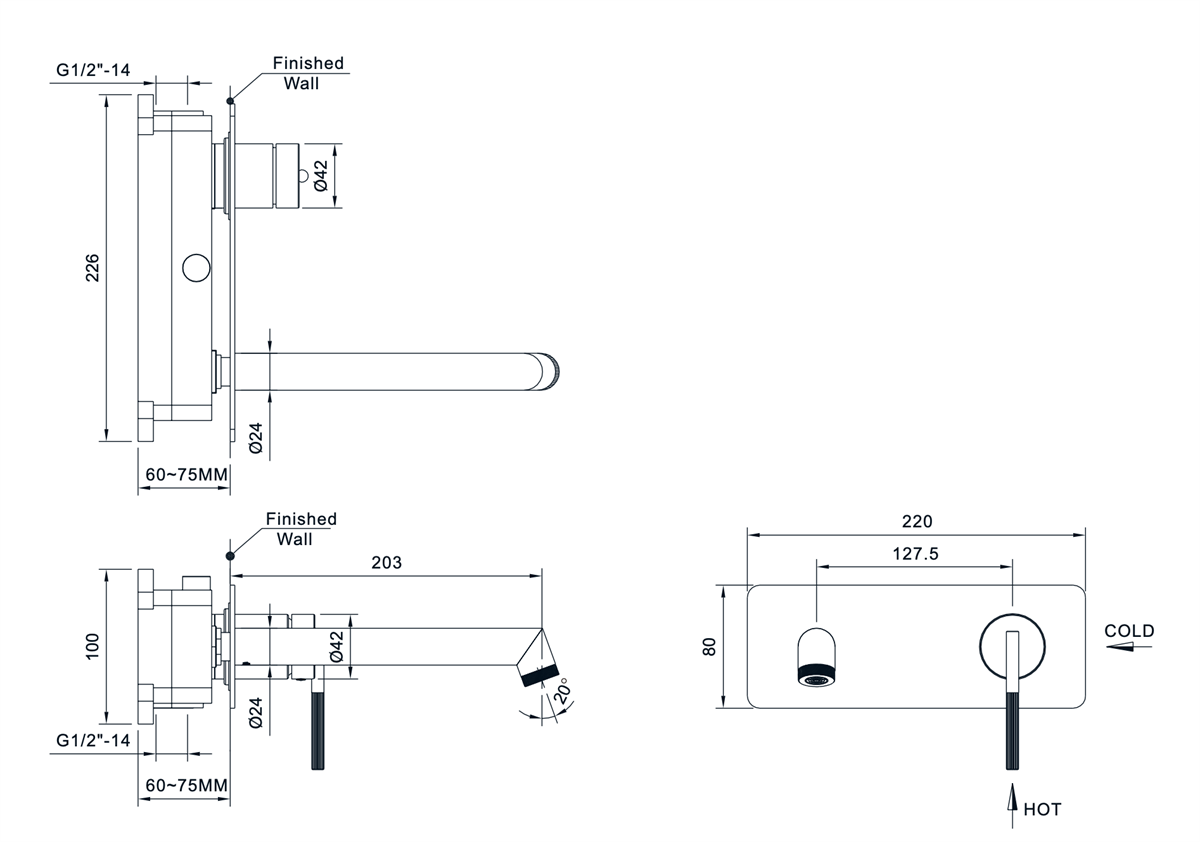 Newarc Opera Ankastre Lavabo Bataryası Mat Bakır 985571s