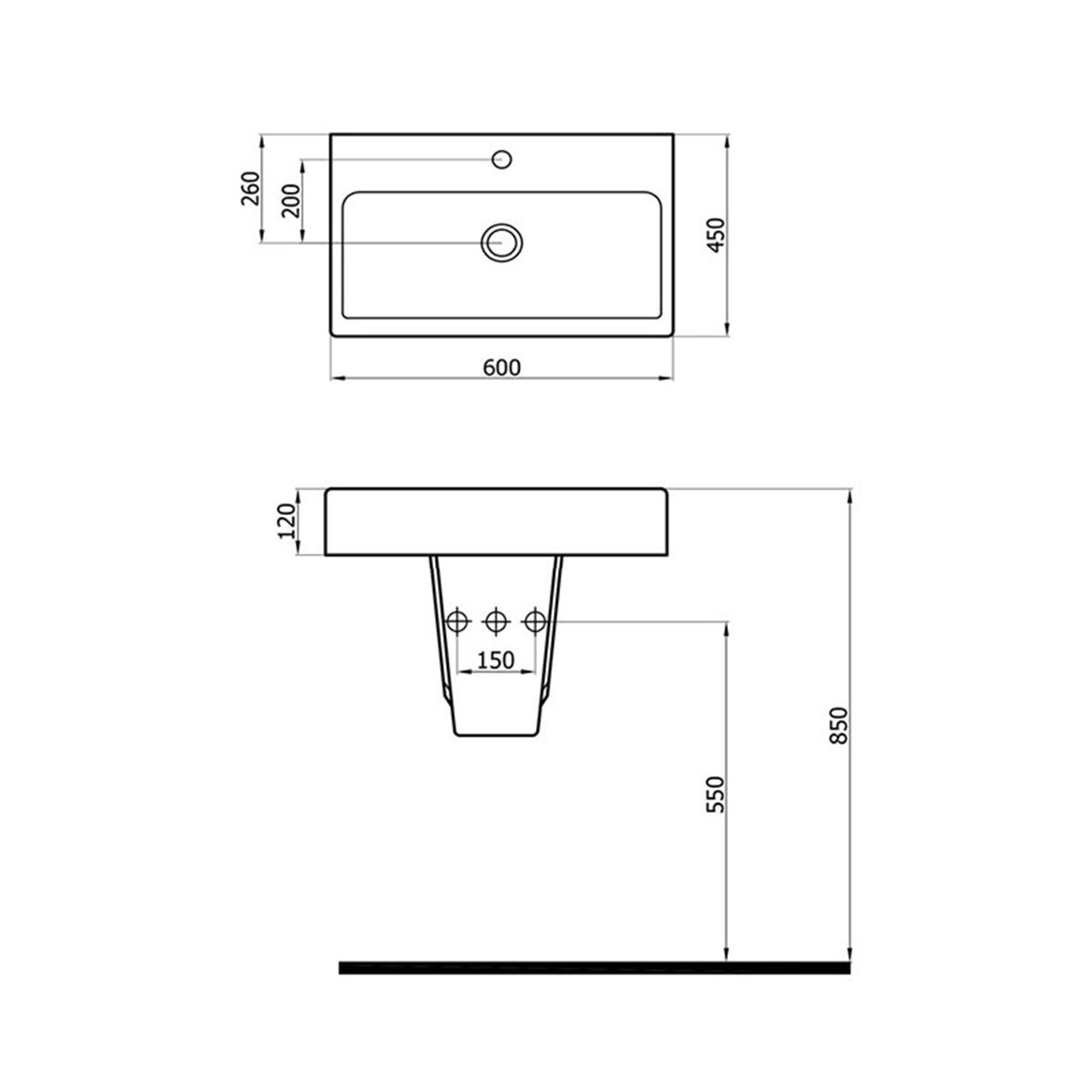 Newarc Tezgah Üstü Batarya Delikli Power Lavabo 60X45X12Cm 4800 + Yarım Ayak 4812