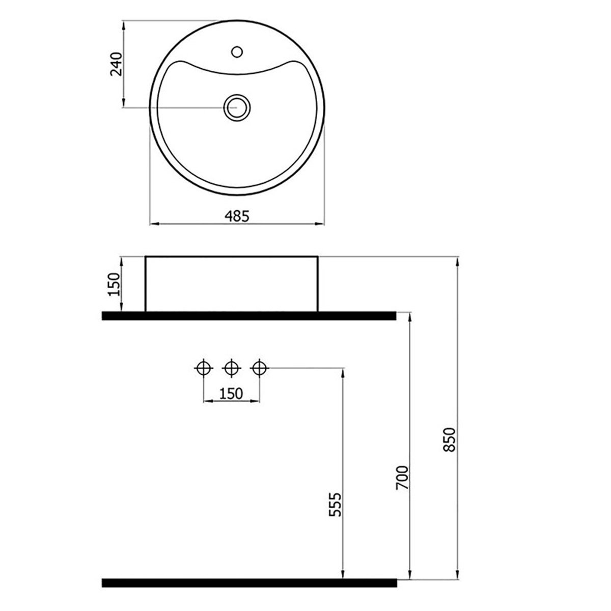Newarc Tezgah Üstü Batarya Delikli Zunih Lavabo 48,5X15Cm 5017