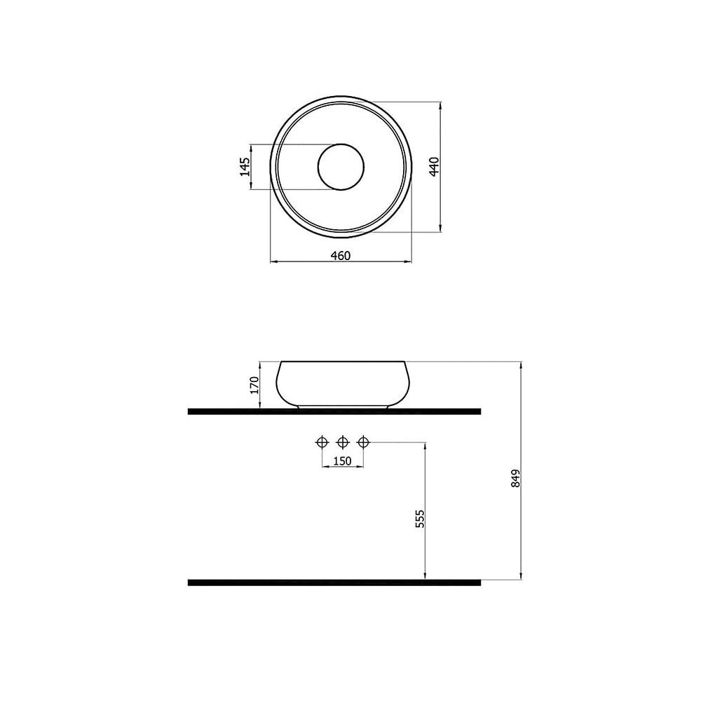 Newarc 505050 modeli, modern banyo tasarımlarında zarif ve sade bir görünüm isteyenler için uygundur. Ø46 cm çapı ve 17 cm yüksekliği ile ideal bir kullanım alanı sunar. Hem ev tipi banyolarda hem de otel, ofis gibi ticari mekanlarda şık bir lavabo alternatifi olarak kullanılabilir. Yuvarlak seramik lavabo formu sayesinde her türlü tezgah materyaliyle uyum sağlar ve mekâna bütünlük katar.