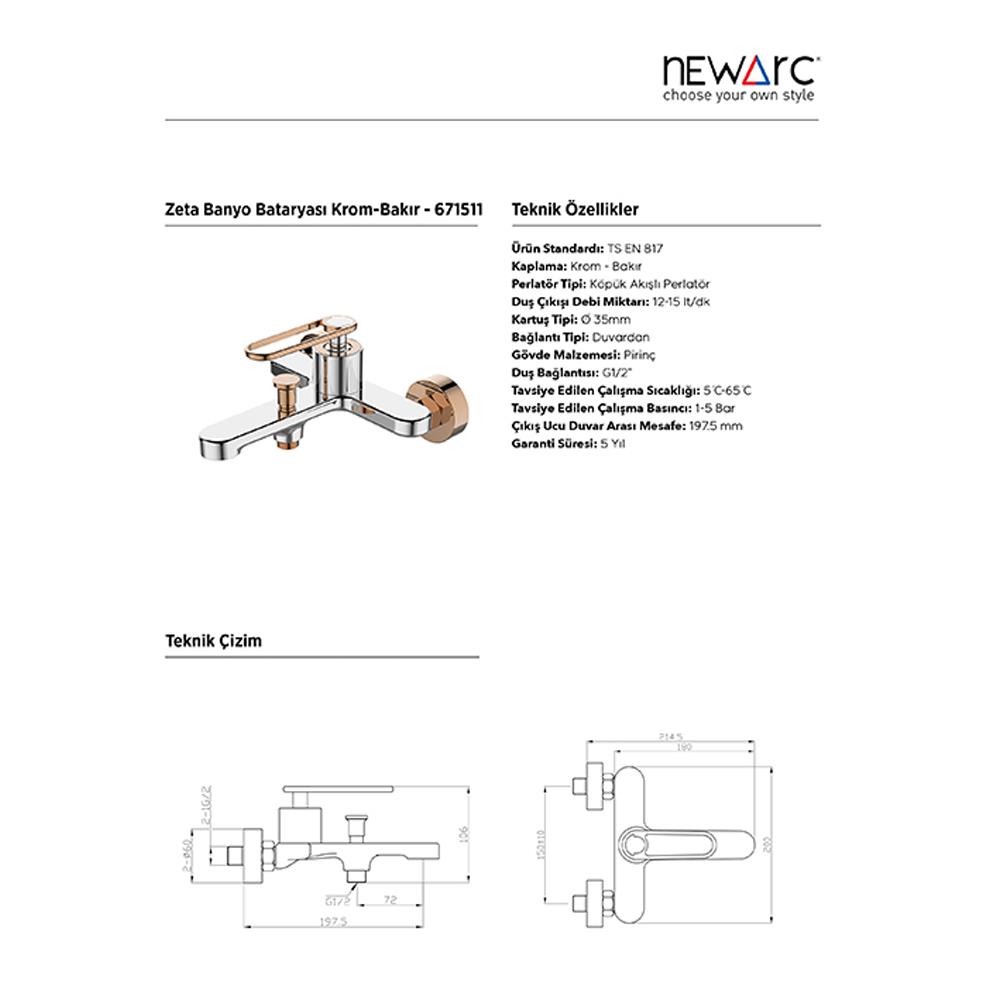 Newarc Zeta Banyo Bataryası Krom-Parlak Bakır 671511