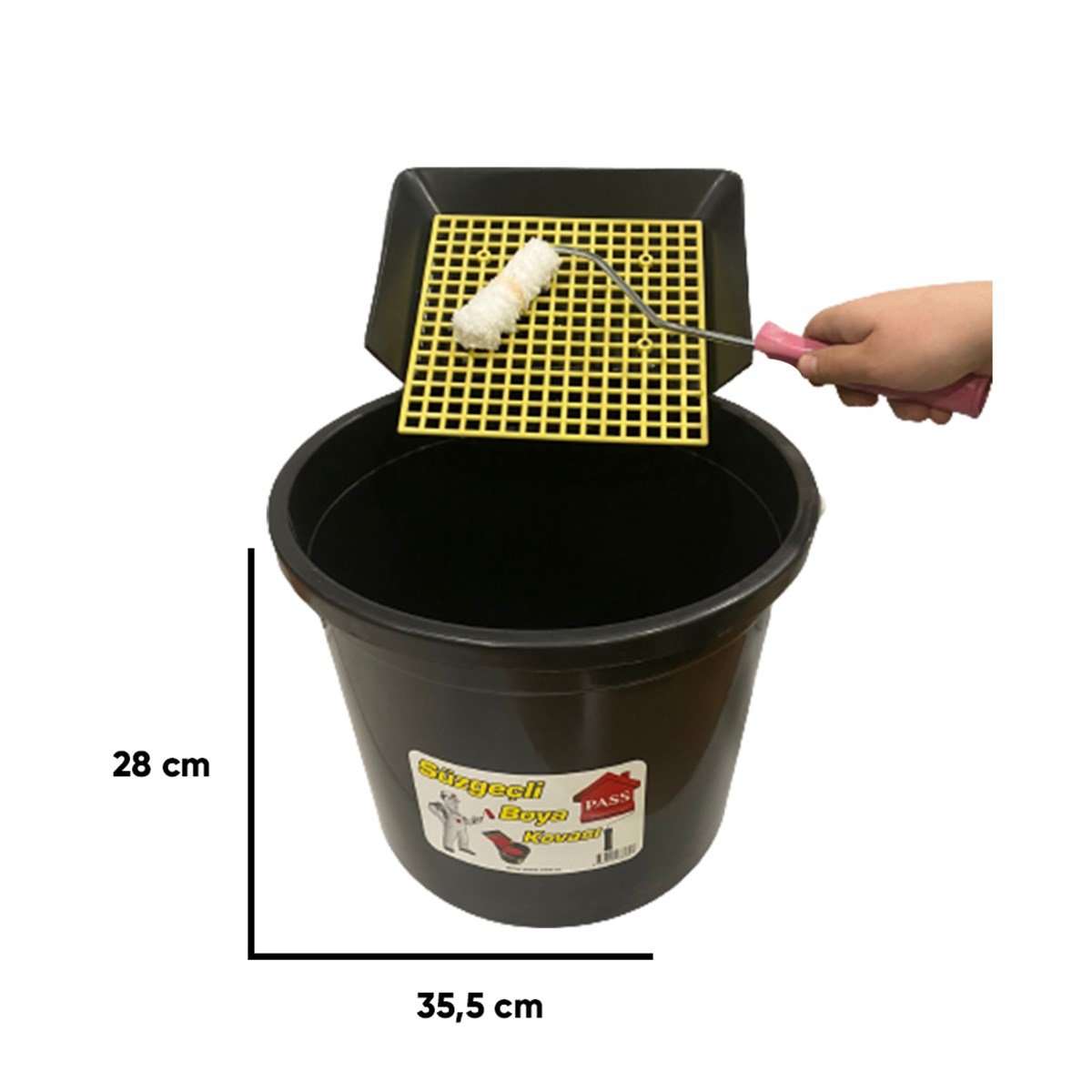 Pass Süzgeçli Boya Kovası, boya uygulamalarında pratiklik ve temizlik sağlayan kullanışlı bir ekipmandır. İç kısmında yer alan entegre süzgeç paneli sayesinde rulo üzerindeki