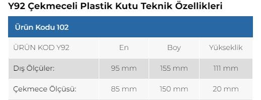 Y92 çekmeceli kutu sayesinde elektronik komponent ve sarf malzemelerinizi şık ve düzenli bir şekilde saklayabilirsiniz. Mavi renk dış kap ve şeffaf çekmeceden oluşur.