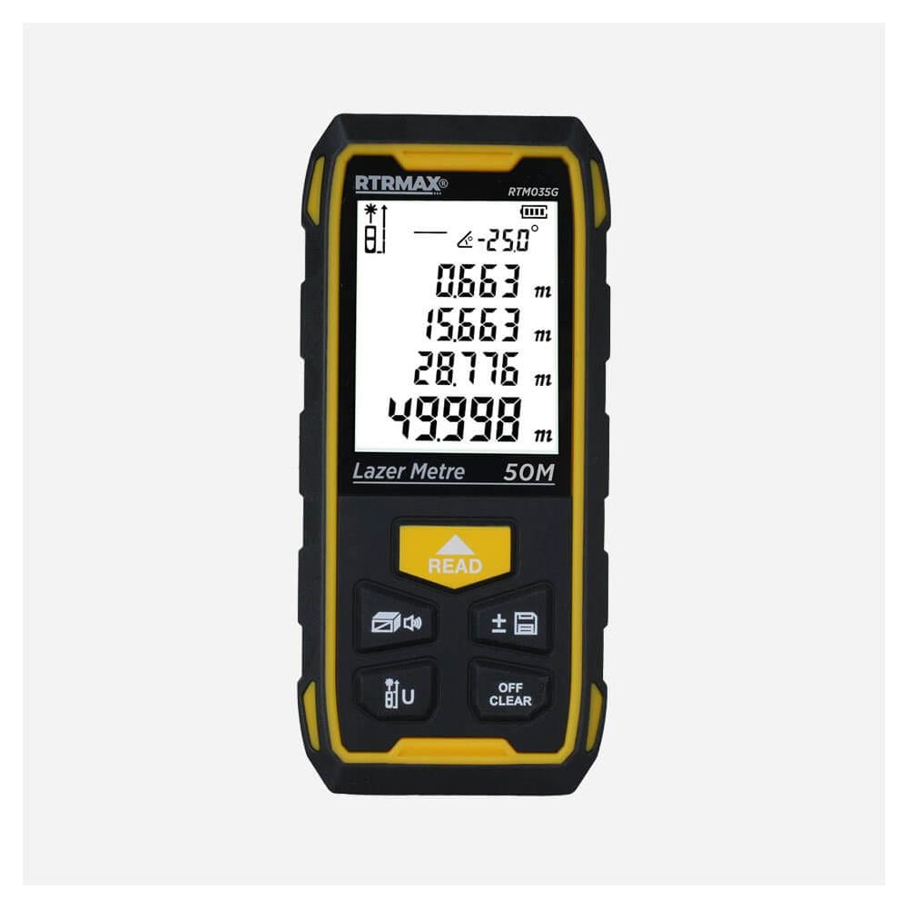 Rtrmax RTM035G, profesyonel ve hassas ölçüm ihtiyacı olan kullanıcılar için tasarlanmış, yeşil lazer teknolojisine sahip, şarjlı bir dijital mesafe ölçüm cihazıdır. 50 metreye kadar