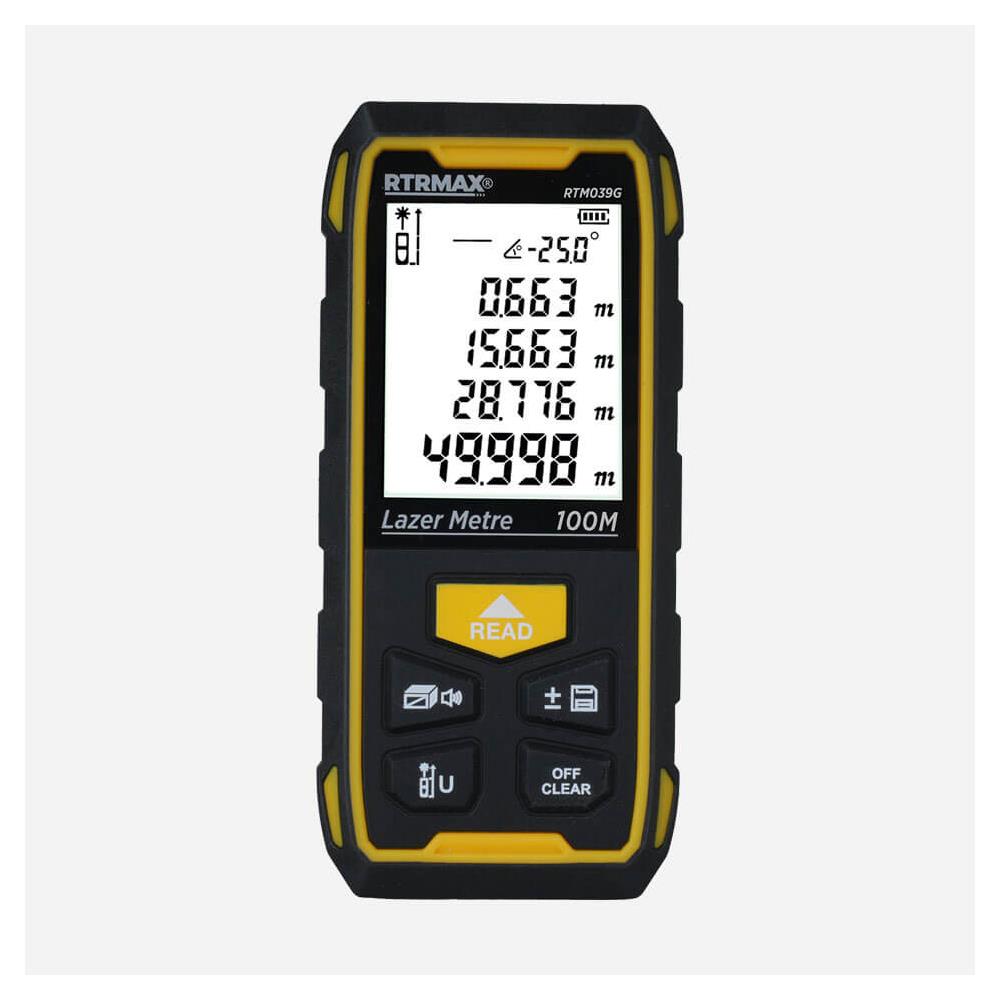 Rtrmax RTM039G, ileri seviye ölçüm ihtiyaçları için geliştirilmiş, 100 metreye kadar yüksek hassasiyetli ölçüm yapabilen, şarjlı ve yeşil lazer teknolojisine sahip kompakt bir mesafe