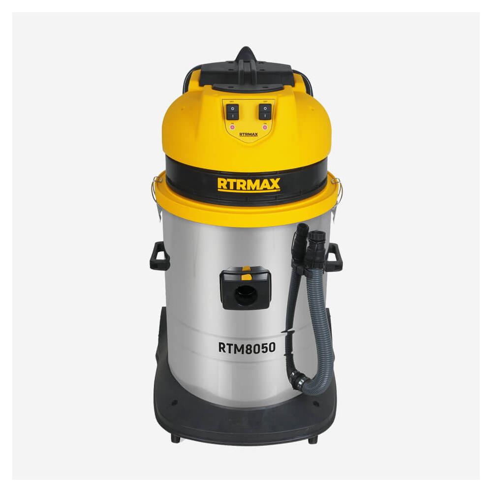 Rtrmax RTM8050 Islak-Kuru Sanayi Tipi Süpürge 2400 W, yüksek motor gücü ve geniş haznesi sayesinde yoğun ve zorlu temizlik işleri için tasarlanmış güçlü bir endüstriyel