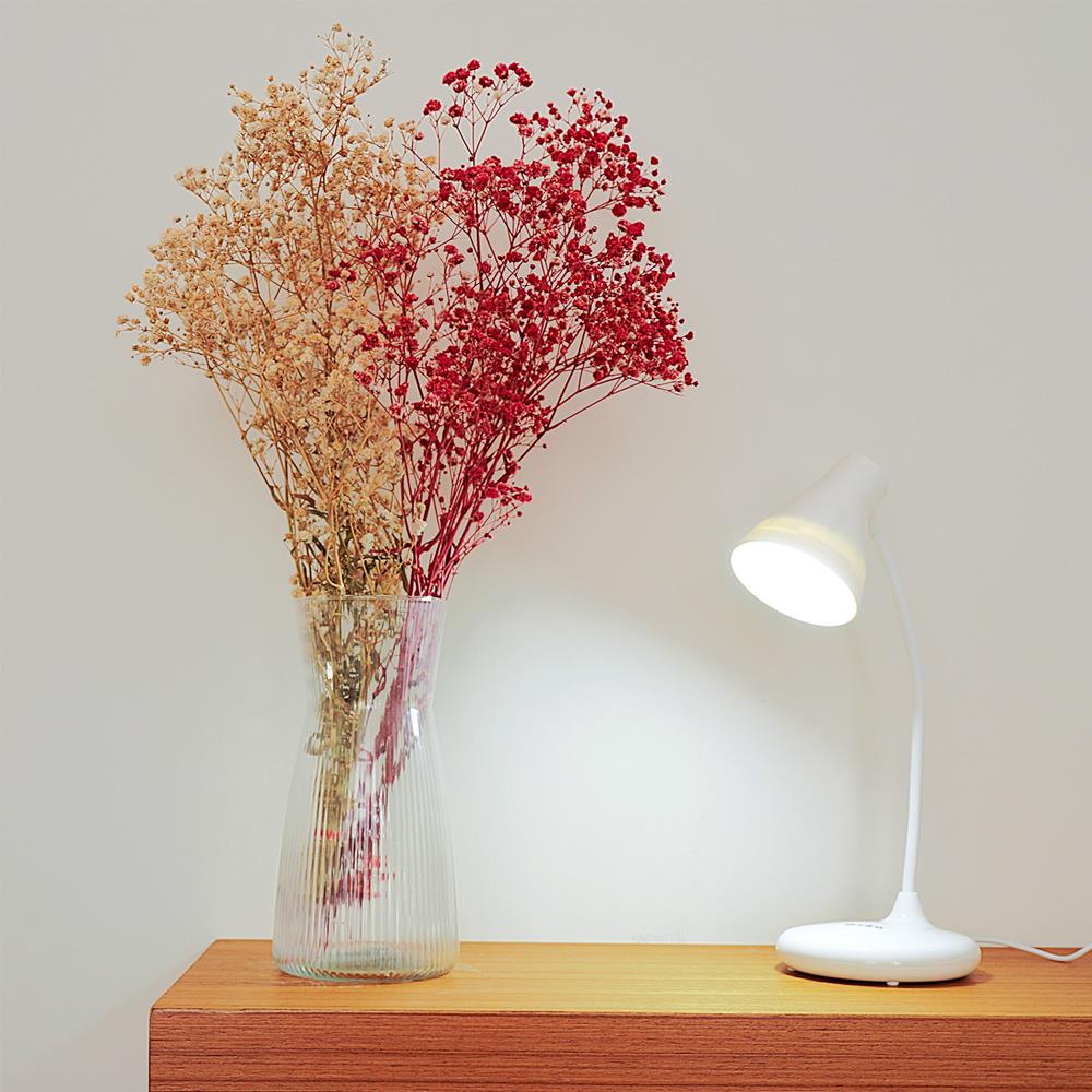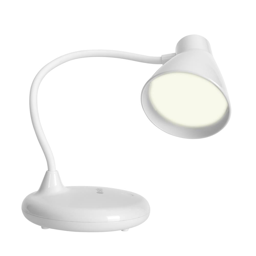 Beyaz gövdesi ile sade ve modern bir görünüm sağlar. Esnek boynu sayesinde ışık yönü ihtiyaç duyulan alana rahatça yönlendirilebilir. Kompakt yapısıyla masa üzerinde fazla yer