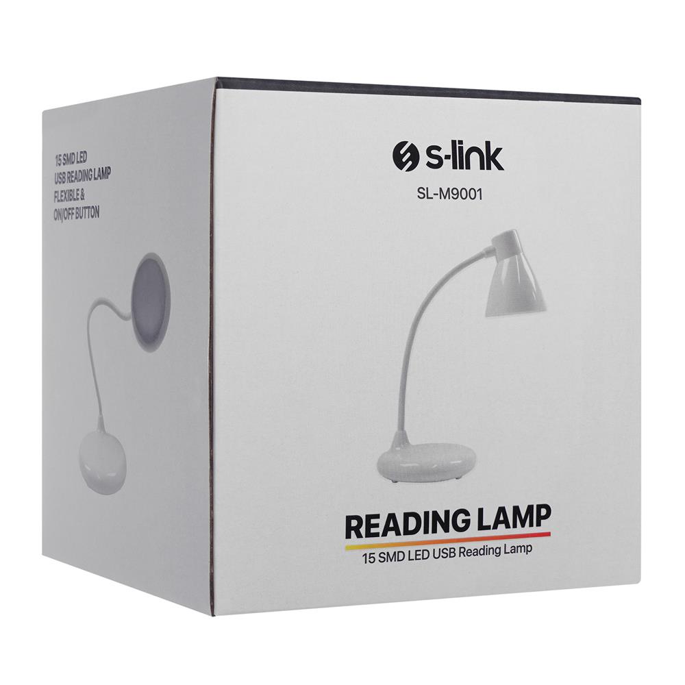 S-Link SL-M9001 masa lambası, güçlü 15 adet SMD LED ışık kaynağıyla göz yormayan, homojen ve yeterli bir aydınlatma sunar. Masa üstü kullanım için tasarlanan ürün, hem