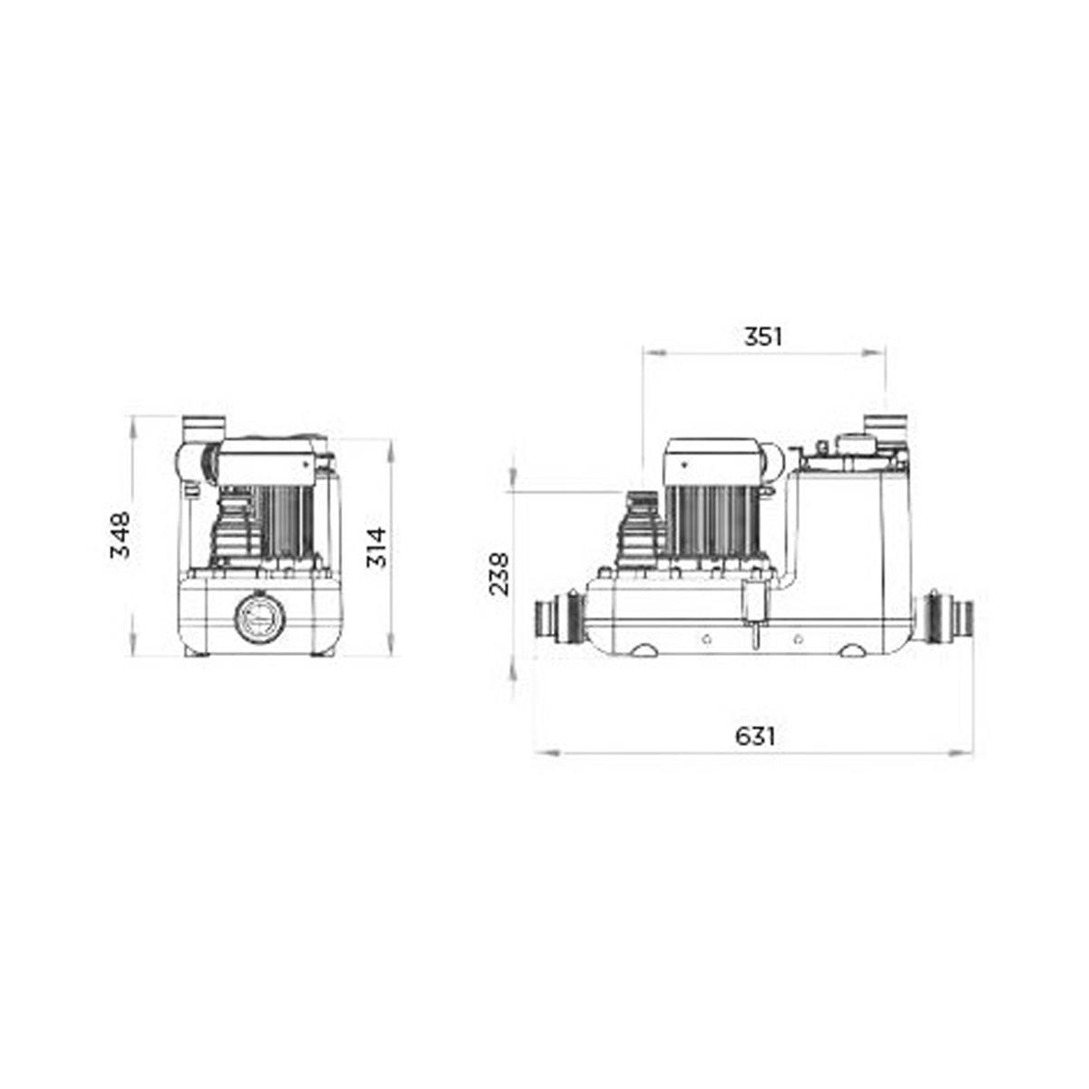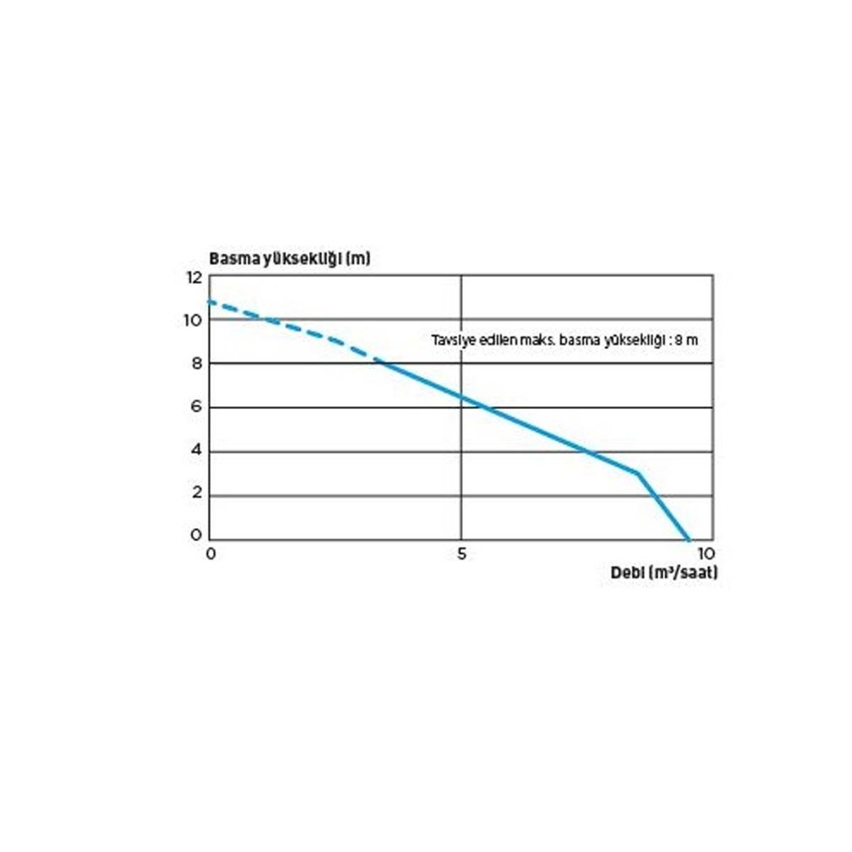 Ticari kullanım için tek motorlu pis su tahliye pompası. Klozet hariç, banyonun, mutfak ve çamaşırhanenin pis sularını dikey maksimum 8 m'ye kadar pompalar.