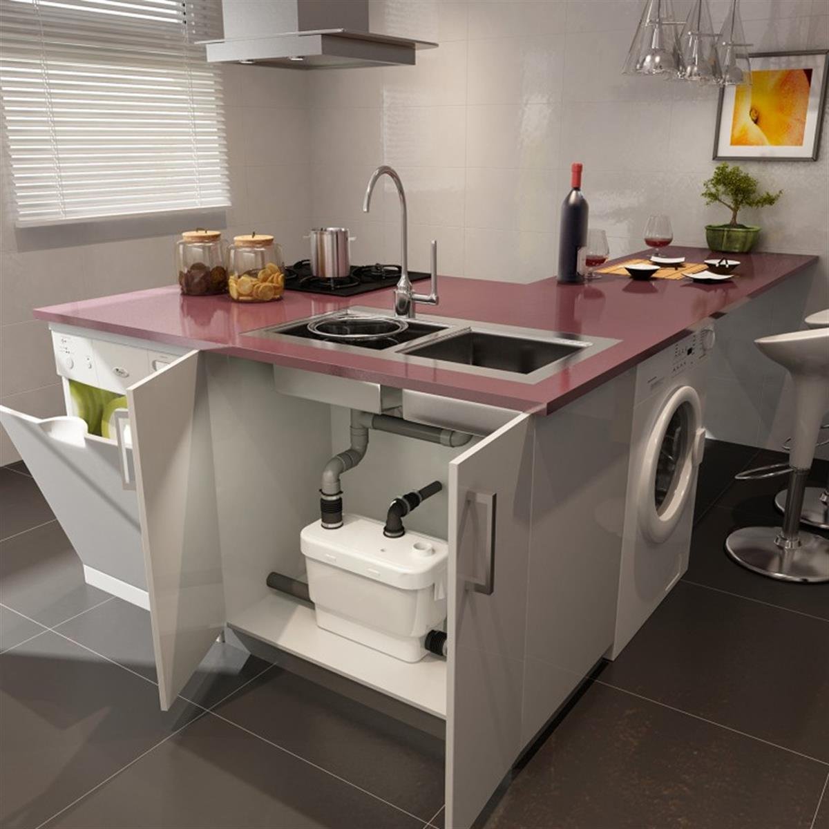 Ev ve iş yerlerinin bodrum katlarına veya kanalizasyondan uzak kalan yerlere sonradan ilave edilen mutfaklar için estetik ve hijyenik bir çözüm sağlar.