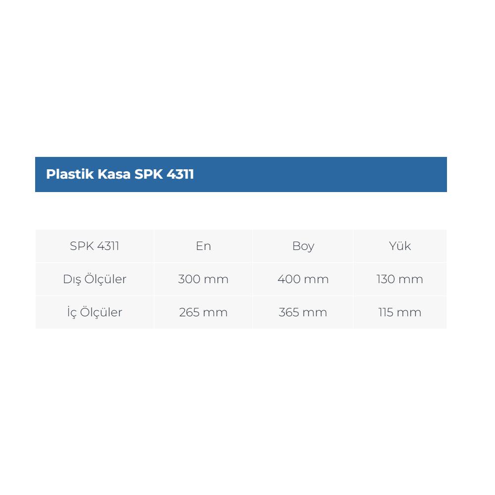 Kapalı yapı, taşınan ürünleri dış etkenlerden, tozdan ve kirden koruyarak hijyenik bir ortam sağlar. Yüksek yoğunluklu plastik malzeme, SPK 4311 kasanın darbelere, UV ışınlarına,
