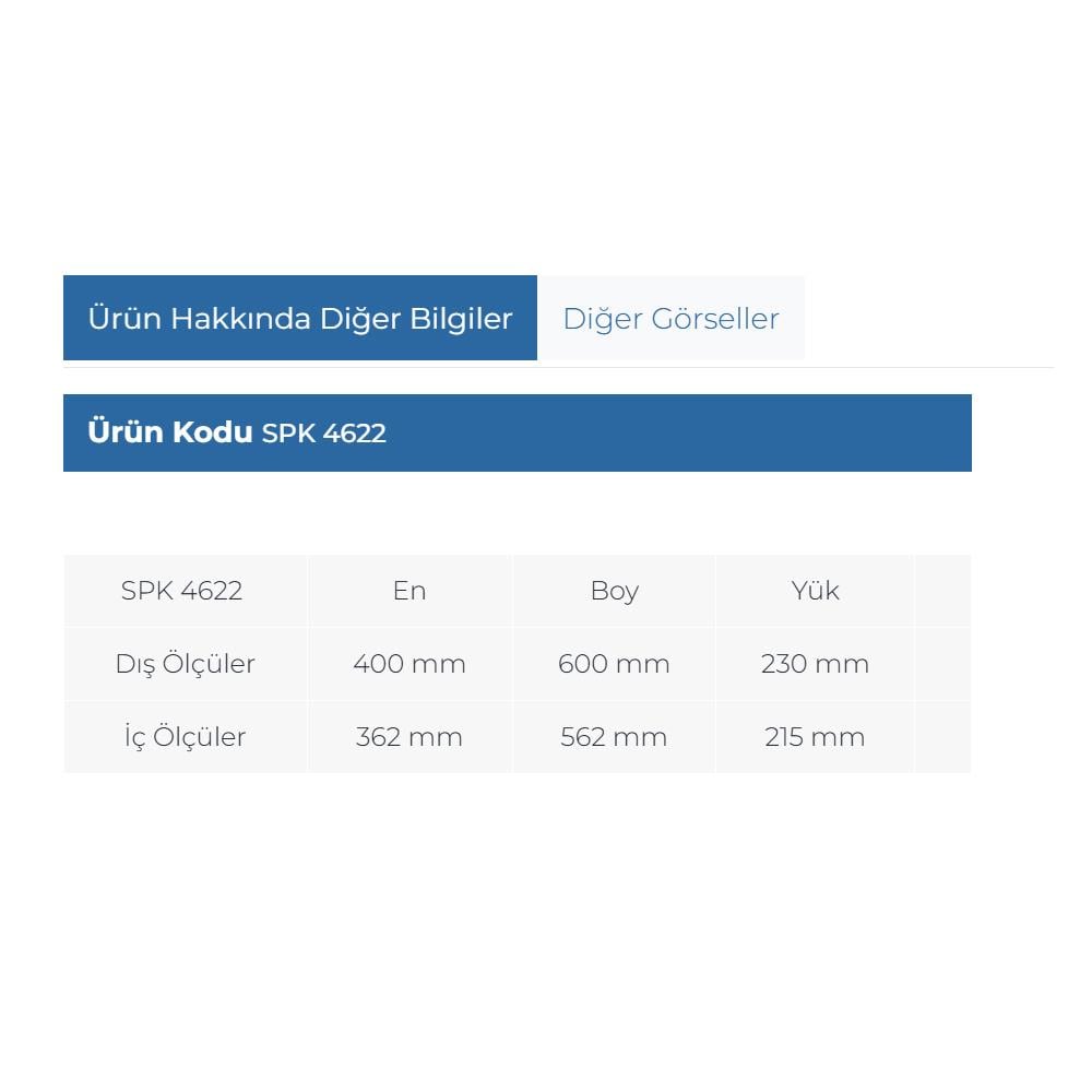 Sembol Plastik SPK 4622 Kapalı Sanayi Tipi Kasa, sağlam yapısı ve geniş iç hacmi ile sanayi ve lojistik alanlarında güvenli ve düzenli taşıma sağlar. 400x600 mm taban ölçüsü ve