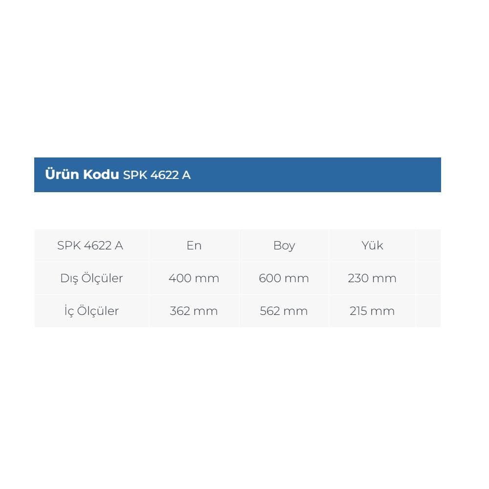 Sembol SPK 4622, endüstriyel kullanıma uygun olarak tasarlanmış, dayanıklı ve işlevsel bir sanayi tipi kasadır. 400x600x230 mm ölçülerindedir. A delikli yapısıyla kasa içinde