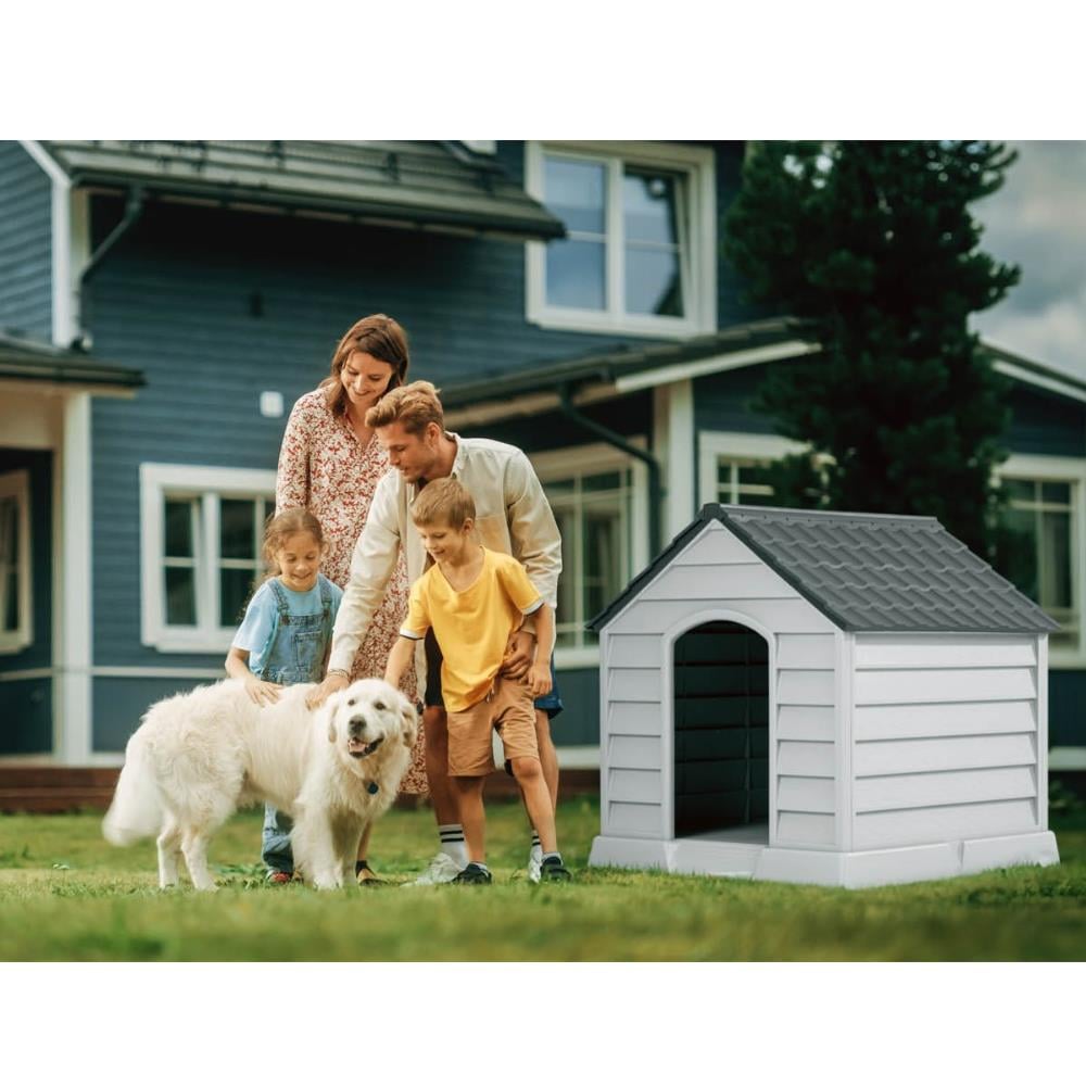 Şenyayla 5101 Büyük Köpek Kulübesi Taş Gri/Kiremit, büyük ırk köpekler için tasarlanmış dayanıklı, konforlu ve estetik bir barınaktır. Şık taş gri ve kiremit renk kombinasyonuyla