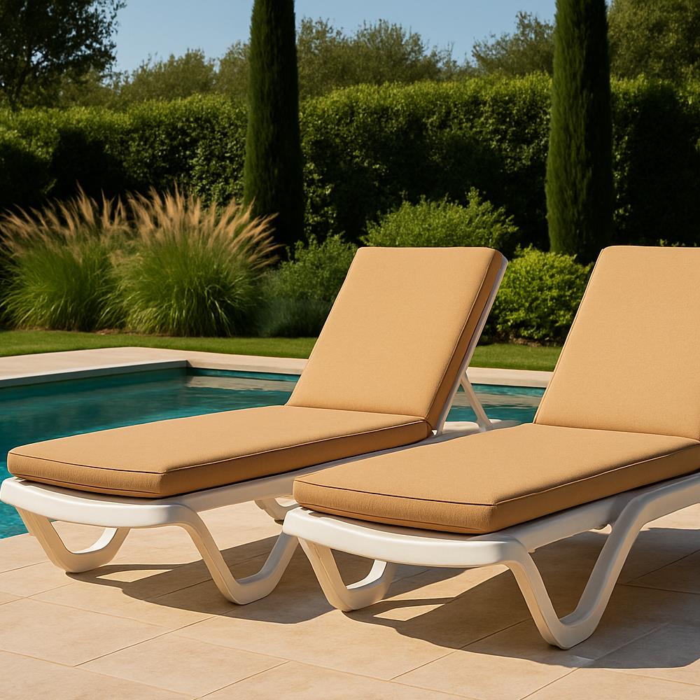 Bej renkteki bu şezlong minderi, su tutmaz dış mekan kumaşı ve kullanışlı tasarımıyla hem şıklık hem de konfor sunar. Katlanabilir yapısı sayesinde taşıması kolaydır ve yer