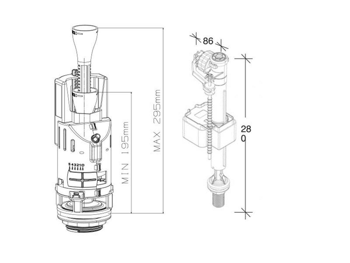 . Su tahliye yüksekliği 4 mm aralıklara sahip taşma borusu ile ayarlanabilir.