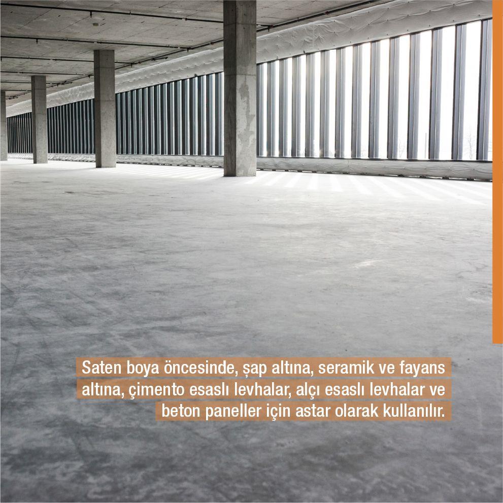 Üzerine yapılacak harç ve saten boya uygulaması öncesinde, beton veya harç yüzeyleri astarlamak için kullanılan tek bileşenli, çok amaçlı, akrilik kopolimer esaslı dispersiyon.