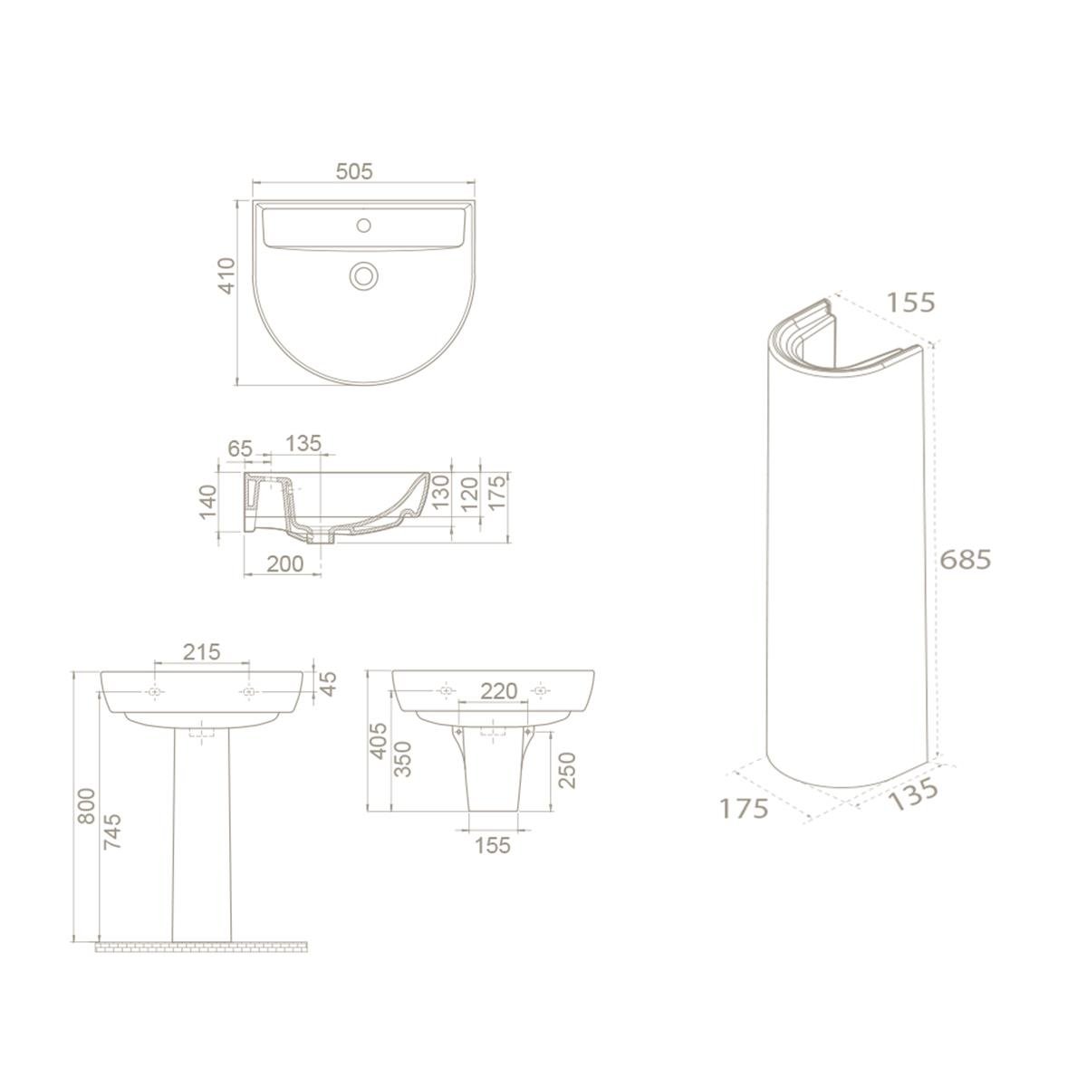 Turkuaz Bella Lavabo 40X50Cm 003200-U + Kolon Ayak 006800