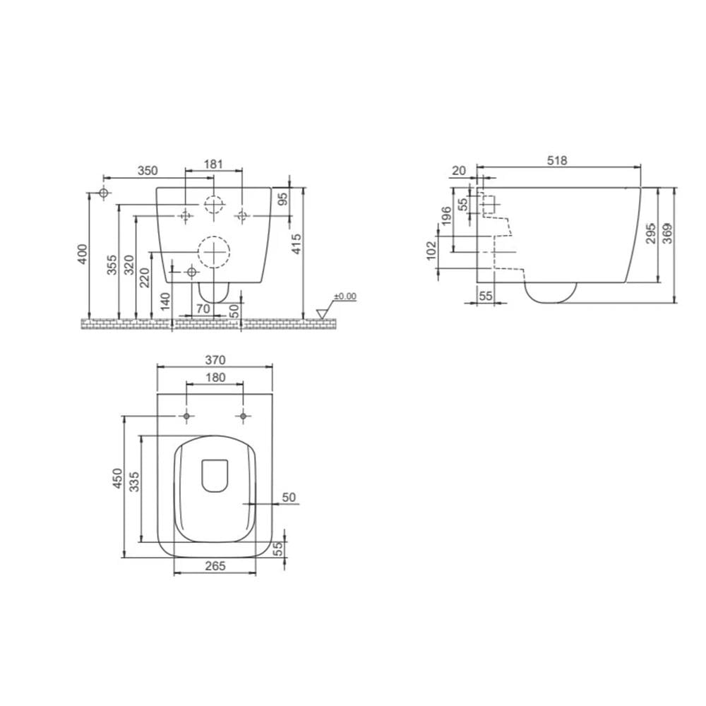 sağlar. Rimless (kanalsız) özelliği sayesinde suyun klozet içinde eşit dağılmasını sağlayarak daha etkili bir temizlik sunar. Mat gri renk seçeneğiyle, banyonuza