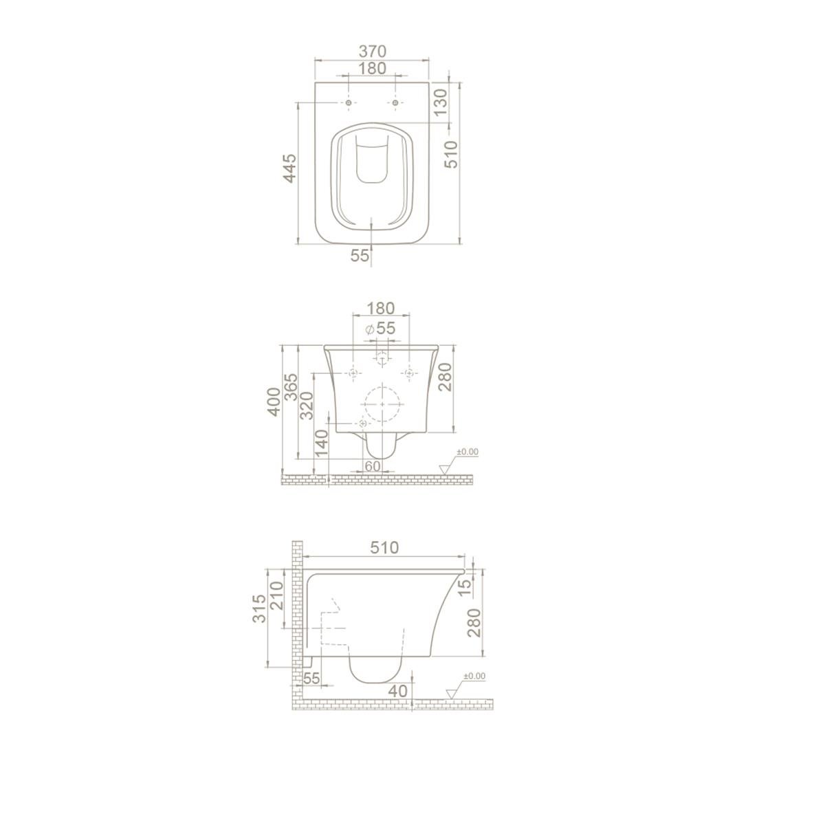 Turkuaz Cerastlye İbiza Rimless Entegre Ara Musluklu Asma Klozet + Yavaş Kapanan Kapak Set001003 (Sıcak Ve Soğuk Su)