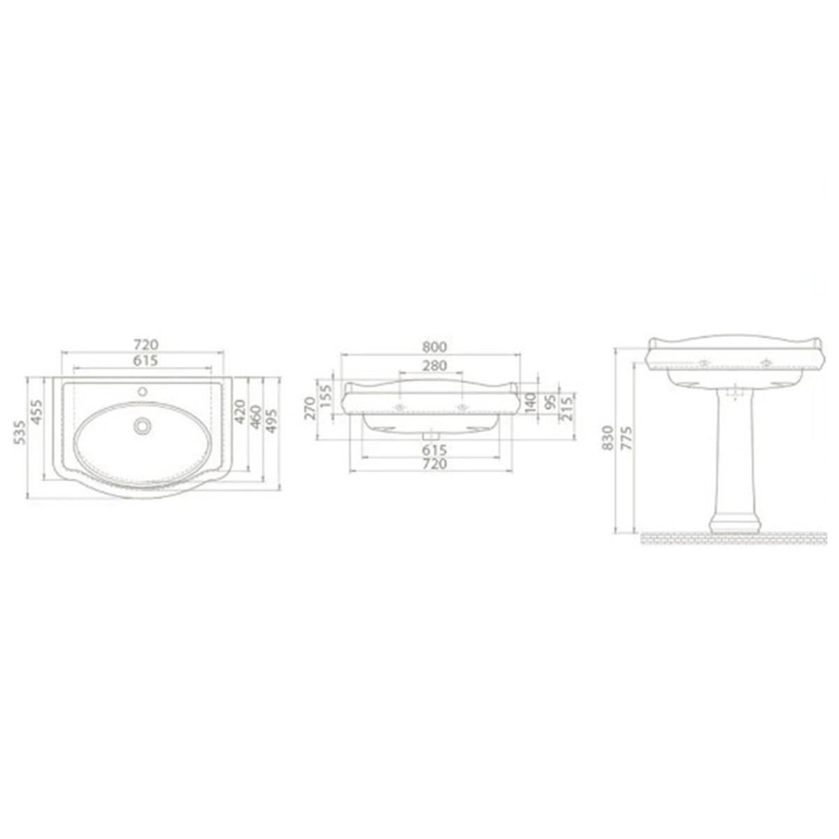 Turkuaz Cerastyle 1837 Etajerli Lavabo 80X54 Cm 030300-U