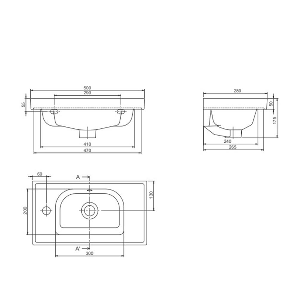 Turkuaz Cerastyle Frame Etajerli Lavabo 50X28Cm 001800-U (Soldan Batarya Delikli)