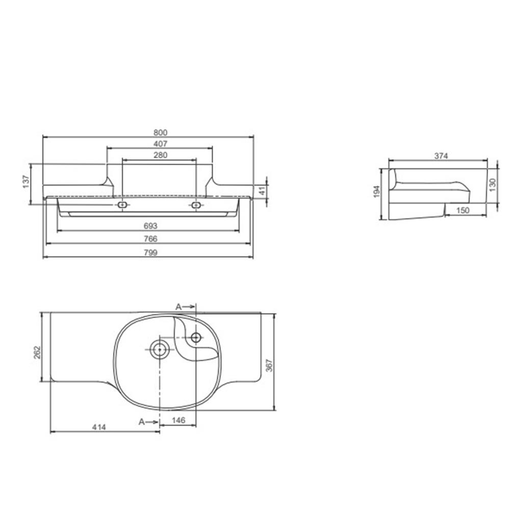 Turkuaz Cerastyle Harmony Etajerli Lavabo 100X37,5X26,4 Cm 043900-U (Sağdan Hazneli)