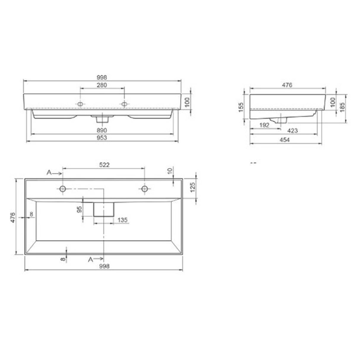 Turkuaz Cerastyle Sharp Etajerli Lavabo 100X48Cm 037600-U (Tek Hazneli,Çift Batarya Delikli)