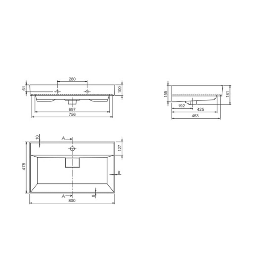 Turkuaz Cerastyle Sharp Etajerli Lavabo 80X48Cm 037300-U