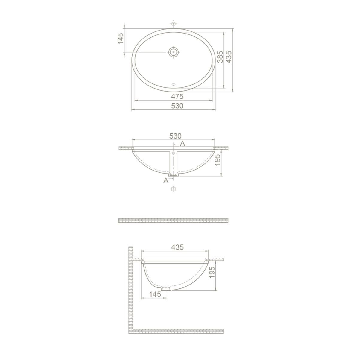 Turkuaz Cerastyle Tezgah Altı Lavabo 48x39cm 070200