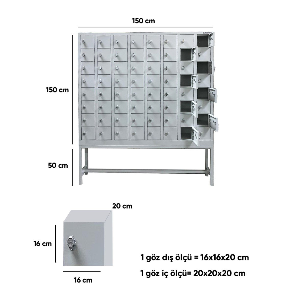 Usta Çelik Cep Telefonu Dolabı Metal Ayakli 64 Gözlü 150X20X150 U-C64