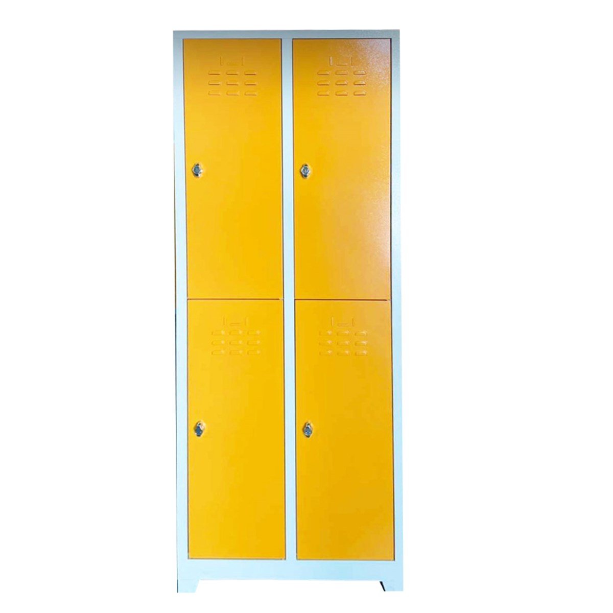 Usta Çelik Giyinme Dolabı Metal 4 Kapılı 66X37X198 U-E04 Gri Gövde-Sarı Kapak