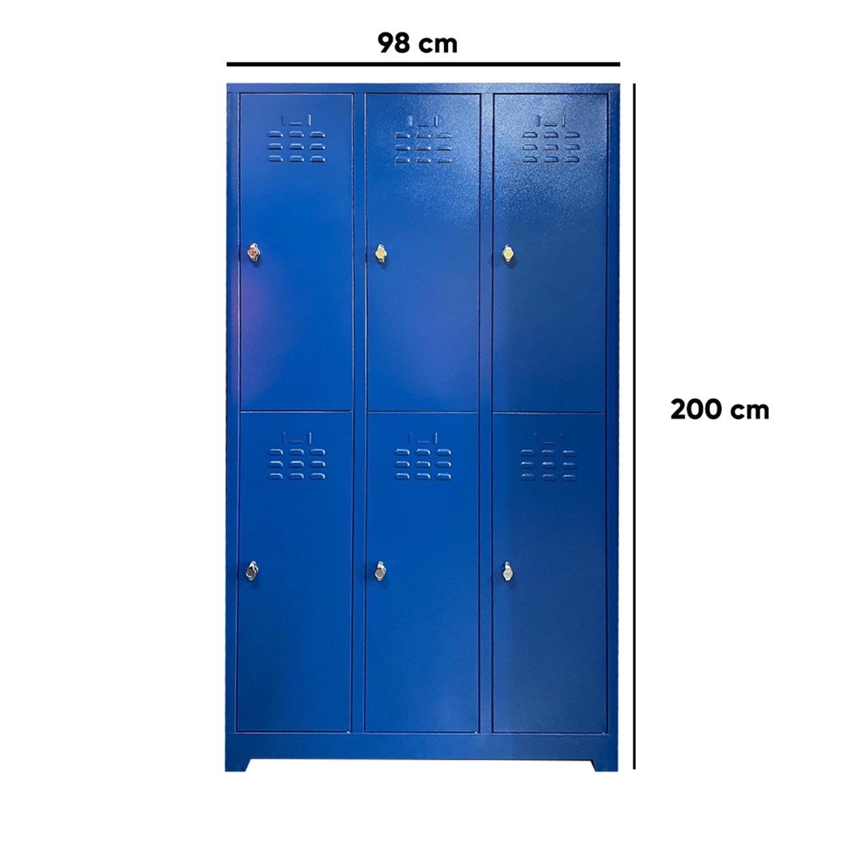 Usta Çelik Giyinme Dolabı Metal 6 Kapılı 98X37X198 U-E06 Mavi Gövde -Mavi Kapak