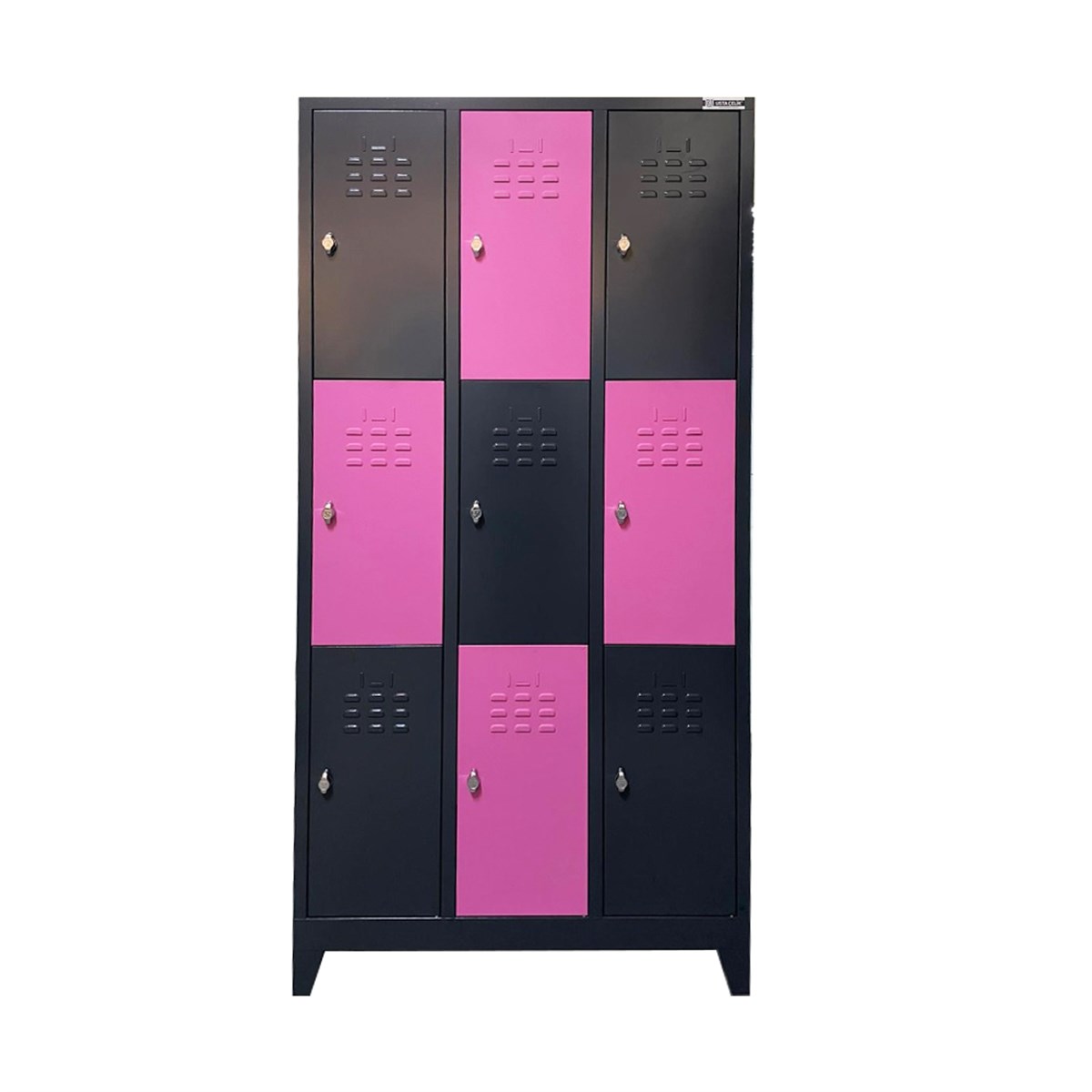 Usta Çelik Giyinme Dolabı Metal 9 Kapılı 97X40X200 U-S09 Siyah Gövde-Pembe Kapak