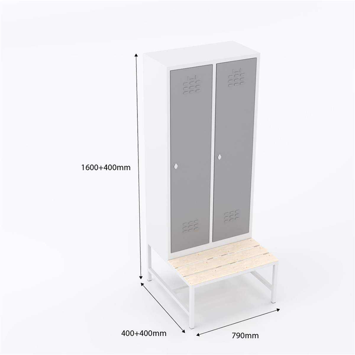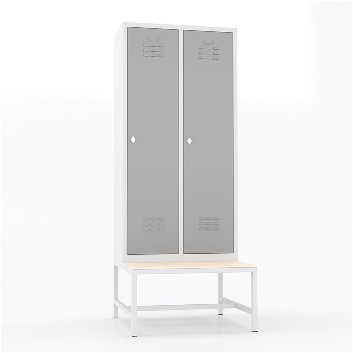 Usta Çelik Giyinme Dolabı Metal Oturma Banklı 2 Kapılı U-S02-Bnk Gri Gövde-Gri Kapak