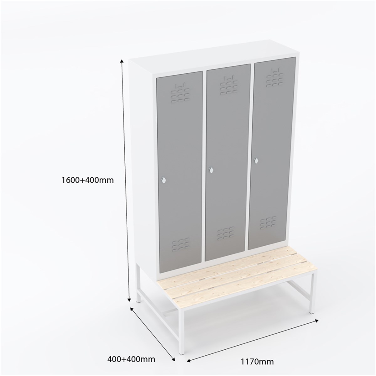 Usta Çelik Giyinme Dolabı Metal Oturma Banklı 3 Kapılı U-S03-Bnk