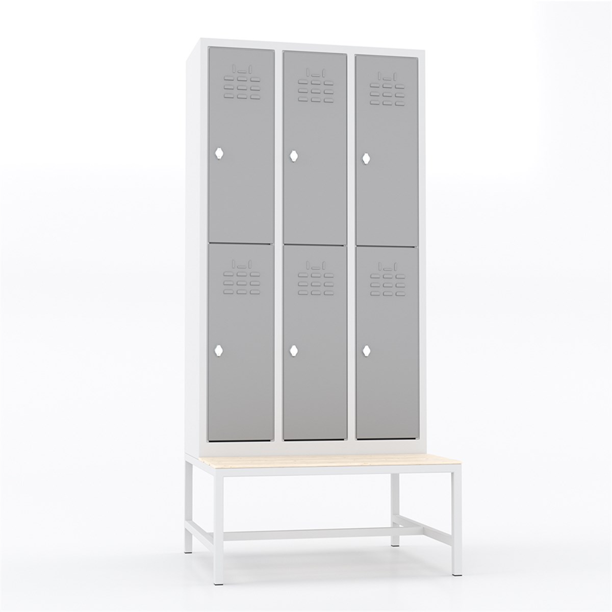 Usta Çelik Giyinme Dolabı Metal Oturma Banklı Dar Tip 6 Yarım Kapılı U-D06-Bnk