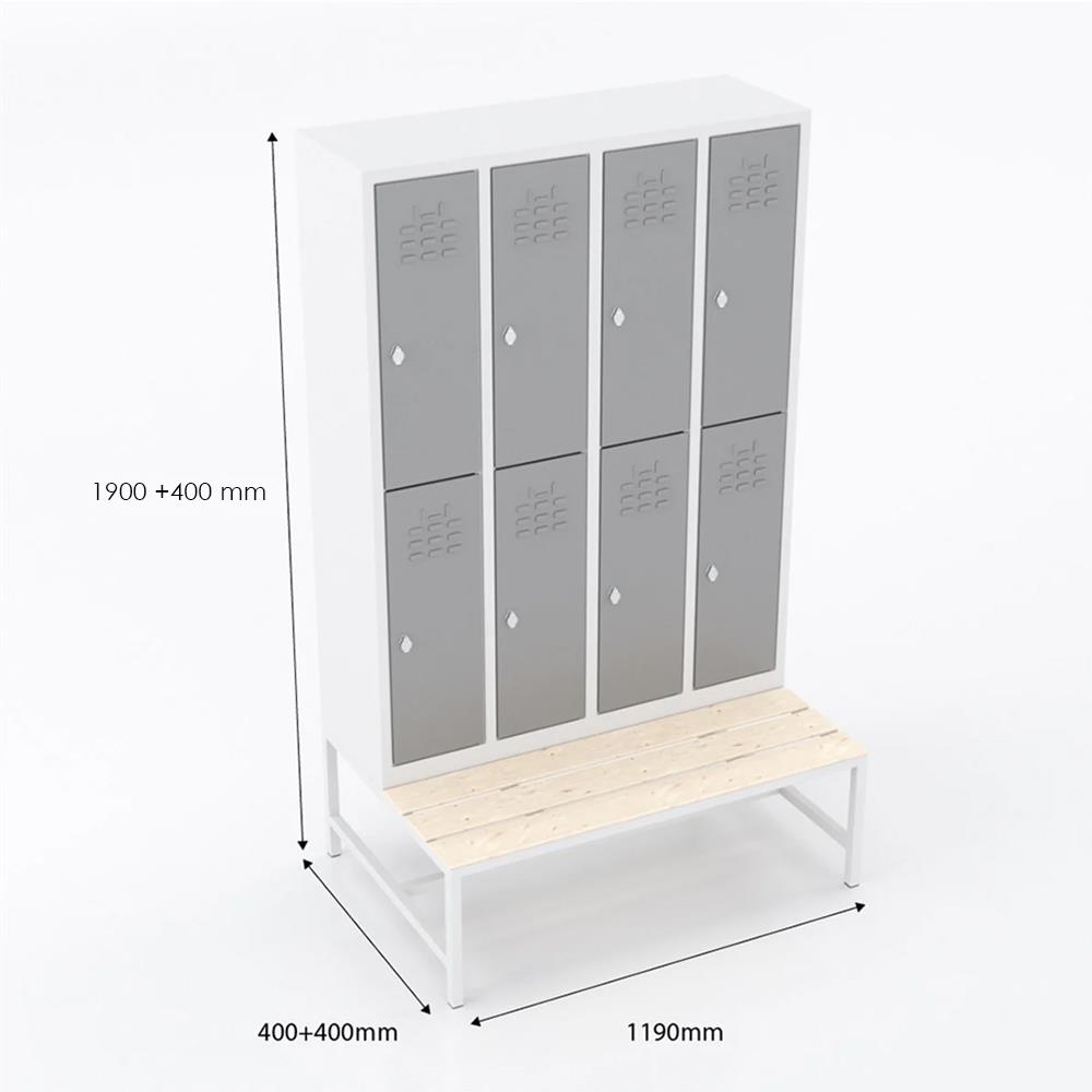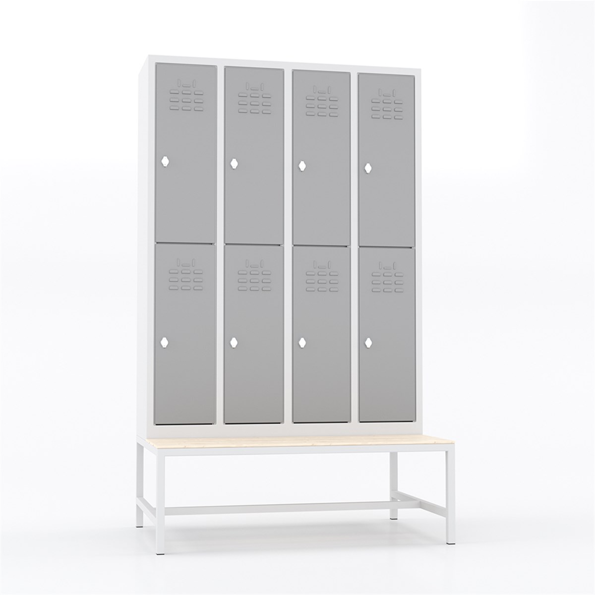 Usta Çelik Giyinme Dolabı Metal Oturma Banklı Dar Tip 8 Yarım Kapılı U-S08-Bnk