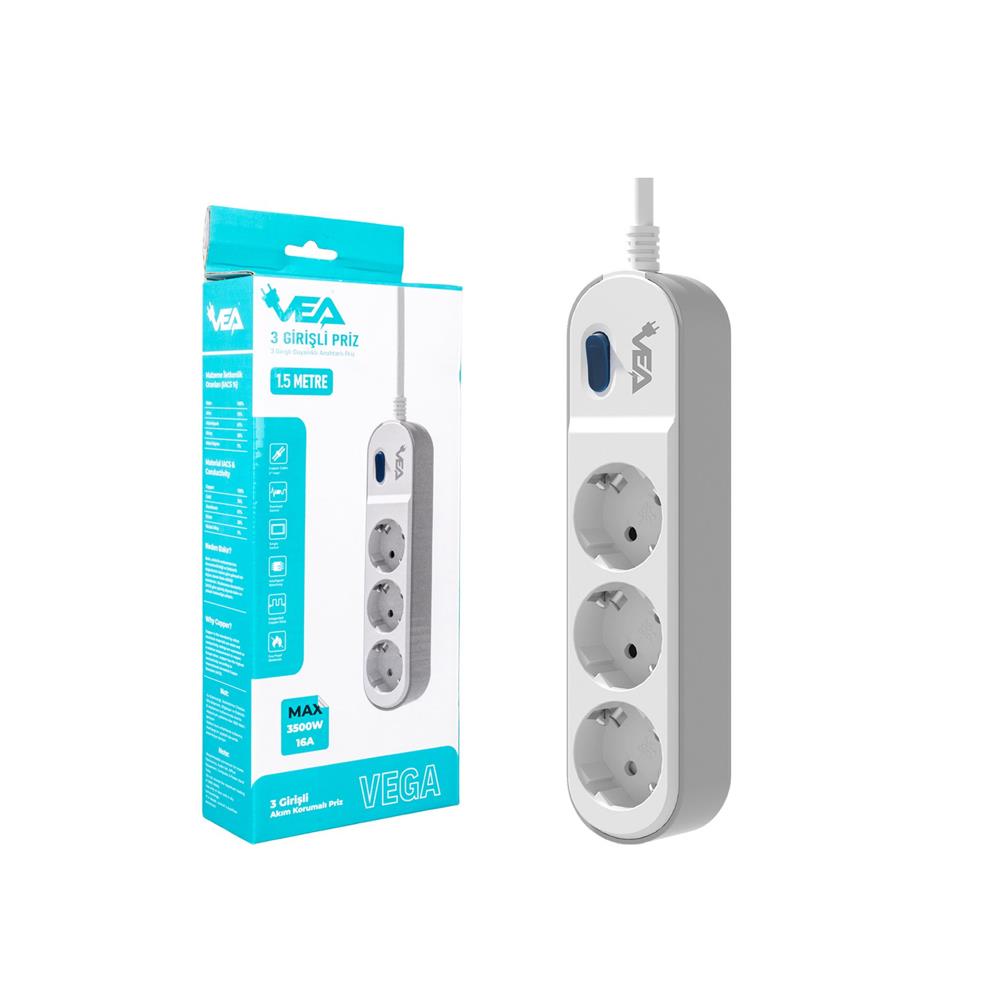 Vea Ve-Vega103 A Class 3'Lü Anahtarlı 1.5 Metre Akım Korumalı Grup Priz