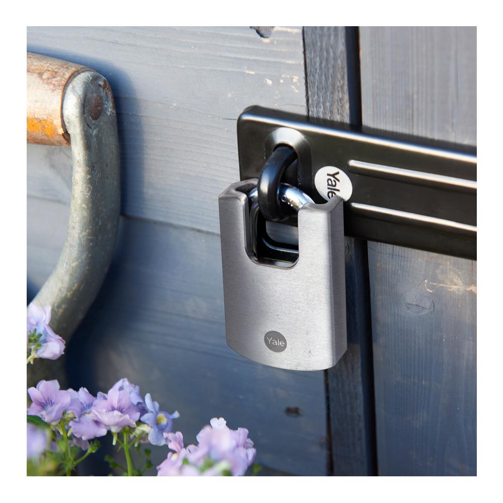 Yale Y122B/50/123/1 modeli, yüksek güvenlik gerektiren uygulamalar için tasarlanmış, dayanıklı ve dış etkenlere karşı korumalı bir asma kilittir. Sert pirinç gövdesi ve