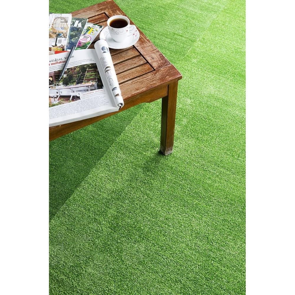 Yeşil Çim Halı 7 mm, doğal çim görüntüsü sunan, düşük bakım gerektiren ve uzun ömürlü bir zemin kaplama çözümüdür. 7 mm hav yüksekliği ile balkon, teras, bahçe, kafe