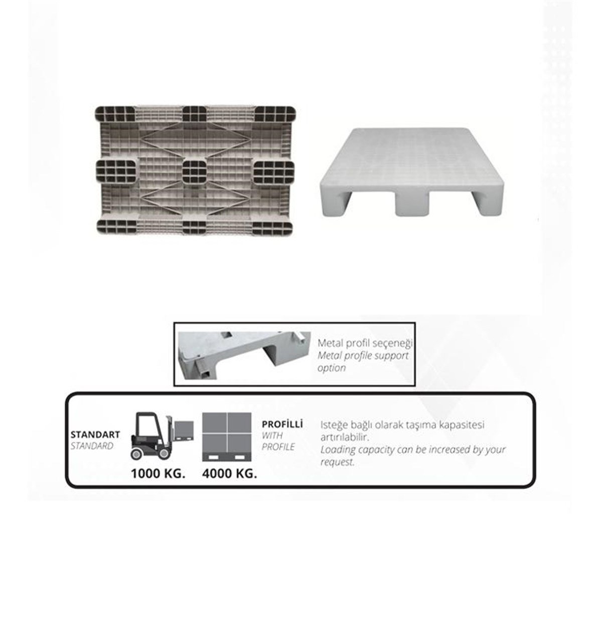 * Dayanıklılık: Ahşap paletlere göre daha dayanıklıdır, kırılma ve çürüme yapmaz uzun ömürlüdür.